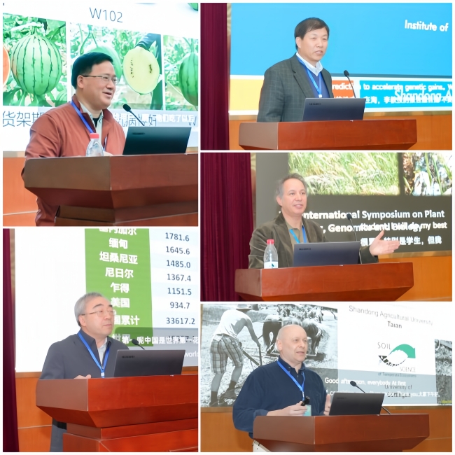 开幕式结束后,邓兴旺院士,张新友院士,德国哥廷根大学农学院Yakov Kuzyakov教授,美国路易斯维尔大学化学系和生理系张翔教授,美国佐治亚大学作物与土壤科学院李增禄教授,土耳其库克洛瓦大学农学院Hakan Özkan教授,美国俄亥俄州立大学植物病理系夏烨副教授,中国农业大学农学院郭伟龙副教授,山东农业大学农学院刘树兵教授等13位国内外知名专家、学者作学术报告。专家学者们围绕玉米、小麦、花生等主要粮食及经济作物的“绿色生产与安全健康”展开交流汇报,介绍了我国主要粮食及经济作物精准设计育种的发展,我国花生产业发展的现状及野生种质的研究利用,植物抗病过程中益生微生物的多种功能角色,小麦多组学大数据整合辅助分子育种,膜运输依赖的植物免疫系统研究,纳米技术在中草药植物研究中的应用与绿色生化合成生物学等研究成果。我校3位学生参与此次交流,围绕各自的专业研究进行了学术汇报。