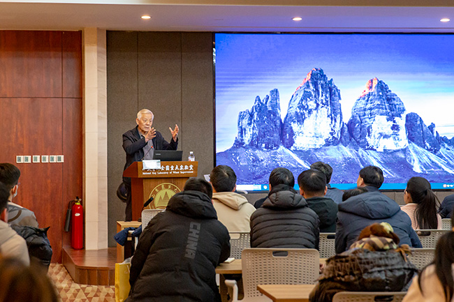报告会上,尹伟伦院士以“盐碱地的产生与治理”为题,从盐碱地的产生与概况、盐碱地治理理论与技术、盐碱地治理范例和林业技术与盐碱地利用等四个方面,结合自身经验与思考,全面介绍了我国盐碱地现状和治理利用的战略思路。尹伟伦院士科学严谨、深入浅出的演讲引起了与会师生的热烈反响。