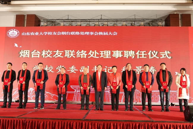 嵇景涛代表学校向在烟台工作、学习和生活的校友表示亲切问候,向支持学校发展的烟台各界人士表示感谢。他说,山东农业大学走过117年的发展历程,培养了大批优秀的校友,在各自的岗位上发光散热,为学校赢得了较高的声誉和广泛的赞扬。学校党委高度重视校友工作,学校的建设与发展离不开社会各届的关心,特别是校友的支持与帮助。当前学校正处于冲击一流学科、建设一流农业大学的关键时期,希望新一届烟台校友联络处进一步凝心聚力,为学校冲刺“十四五”,攻坚“双一流”,加快建设一流农业大学贡献校友力量。