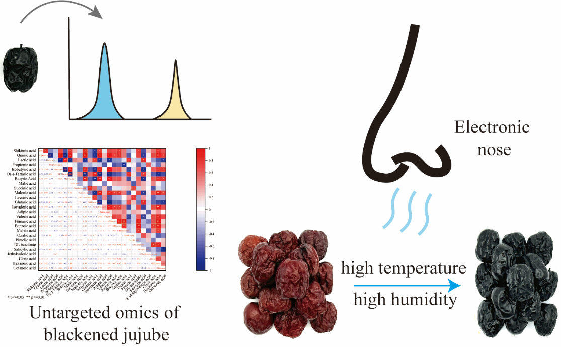 近日,山东农业大学大学果蔬加工团队张仁堂等在Food Chemistry在线发表了题为“Organic acid and aromatic compounds create distinctive flavor in the blackening process of jujube”的研究论文。山东农业大学为文章第一署名单位和通讯作者单位,硕士研究生张鑫为第一作者。山东农业大学副教授、乐陵市健康食品产业技术研究院副院长张仁堂为通讯作者。