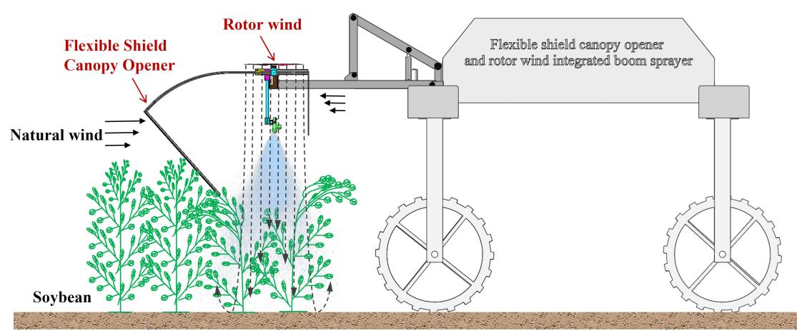 研究表明,新型柔性罩盖开冠器与旋翼风送融合式喷雾模式可以有效打开大豆高郁闭度冠层,改善大豆冠层中的雾滴沉积均匀性和防漂移性能。本研究为农药喷雾方式提供了有价值的见解,为农业可持续高质量发展提供理论指导。