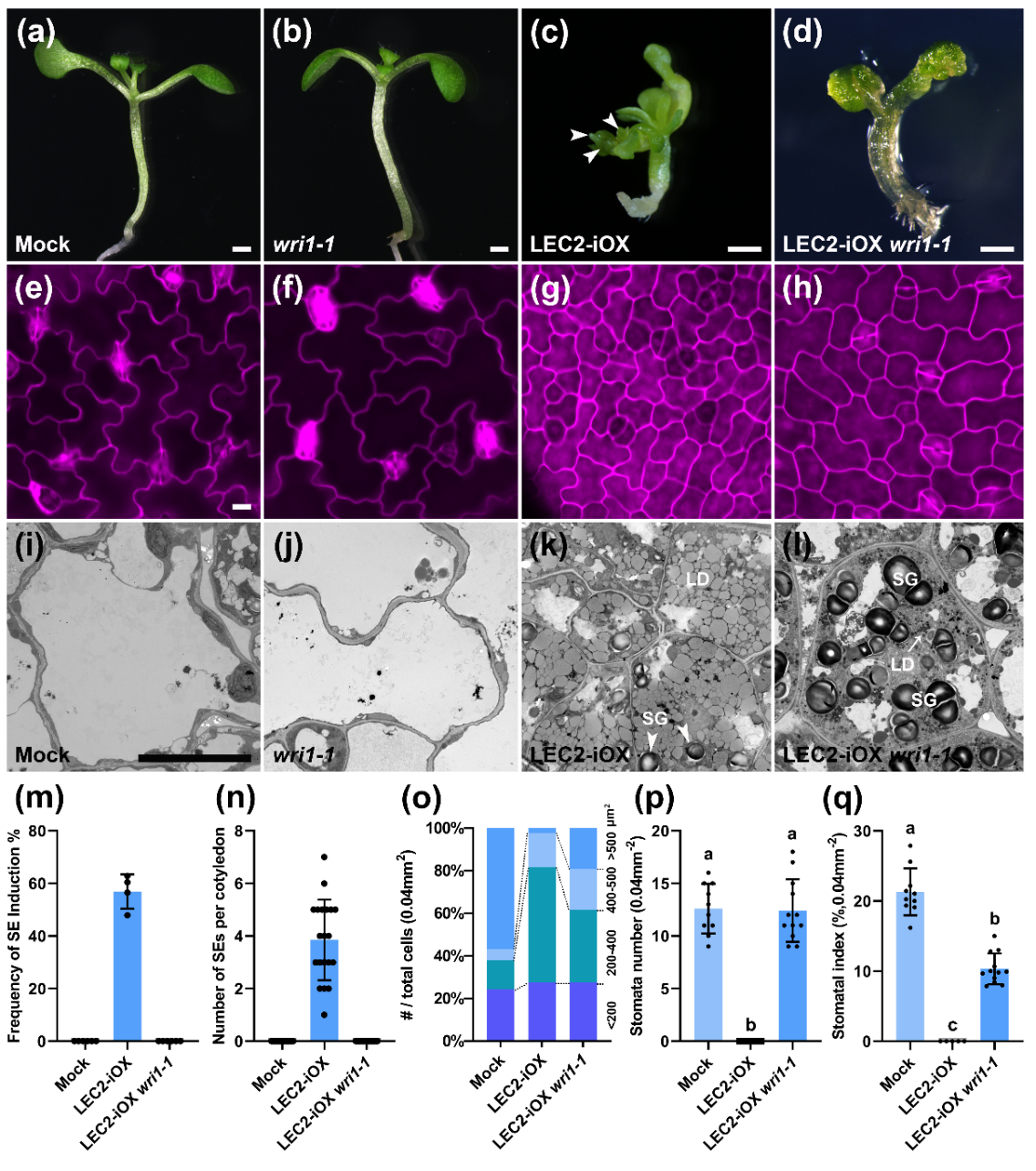 图1. WRI1突变抑制LEC2诱导的体细胞胚胎发生