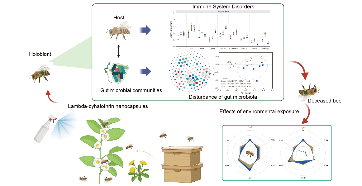 近日,学校蜜蜂科研团队在《Journal of Hazardous Materials》发表了题为“The effect of lambda-cyhalothrin nanocapsules on the gut microbial communities and immune response of the bee elucidates the potential environmental impact of emerging nanopesticides” 的研究论文,揭示了纳米高效氯氟氰菊酯(LC-NCs)通过宿主和肠道微生物群落对重要授粉昆虫意大利蜜蜂的毒性作用机制。