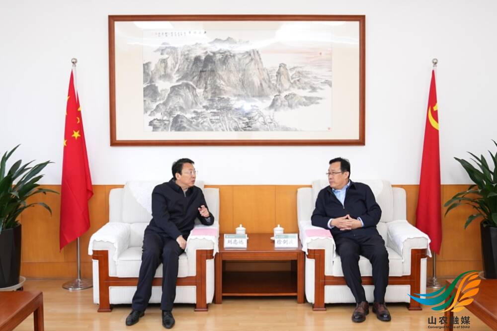 冷畅俭对刘忠远一行的来访表示欢迎,并介绍了学校近年来服务乡村全面振兴的具体举措和取得的成绩。他说,前期,学校与中国农业大学举行了作物学学科与更高水平“齐鲁粮仓”建设研讨会,建立发展战略研究中心,用更高水平农业科技成果夯实“齐鲁粮仓”底板。冷畅俭表示,作为农业大省的农业高校,在保障国家粮食安全,助力更高水平“齐鲁粮仓”建设中要“走在前、挑大梁”,希望与滨州市委、市政府加强农业领域的交流合作,为推动实现粮食增产提质,建设更高水平“齐鲁粮仓”作出更多贡献。