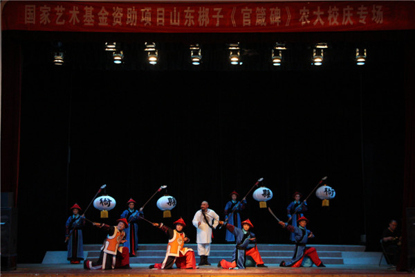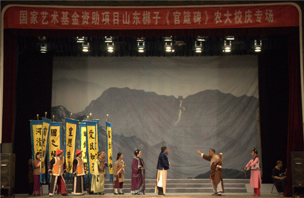 5月21日至22日,山东梆子“清官戏”《官箴碑》在北校区西礼堂进行了两场校庆专场演出,2000余名师生到现场观看。