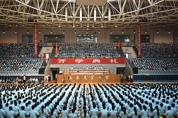 温孚江做开学致辞。他代表学校全体师生员工对2016级新同学的到来表示热烈欢迎,欢迎来到山东农业大学这个未来农业科学家和企业家的摇篮。温孚江说,集英才而育之,是大学的荣幸;育英才而成之,是大学的责任。