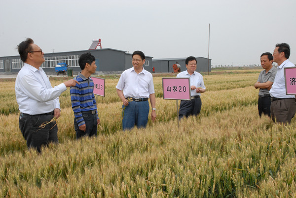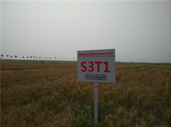 在位于无棣县柳堡镇谭庄子村东的我校无棣综合试验站地头上,无棣中科现代农业工程有限公司常务副总经理梁国栋说:“这里几年前还是大面积的盐碱荒地,今年公司经营的7715亩土地,小麦平均亩产超800斤,目前玉米平均亩产超800斤已成定局,‘渤海粮仓’中度偏重盐碱地‘双八百’的目标马上就要实现了。这与山东农大等科研单位的支持是分不开的……”