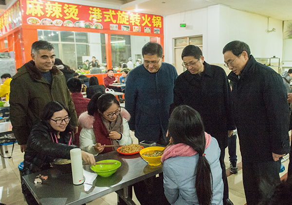 12月14日,校长张宪省、副校长吴衍涛考察调研学校教学和生活保障情况。考察中,张宪省强调,要进一步把工作做实做细,尽最大努力改善学生的学习和生活条件。