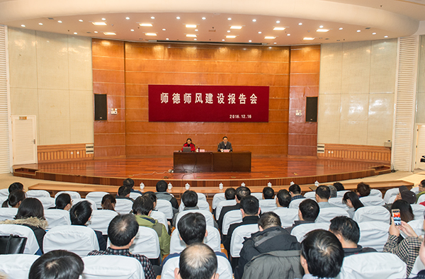 12月16日,学校举办师德师风建设报告会,邀请2016年全国教书育人楷模、广东水利电力职业学院林冬妹教授作了题为“甘守三尺讲台,争做‘四有’老师” 的专题报告,受到师生热烈欢迎。报告会由党委副书记车先礼主持。副校长朱莉、吴衍涛出席报告会。