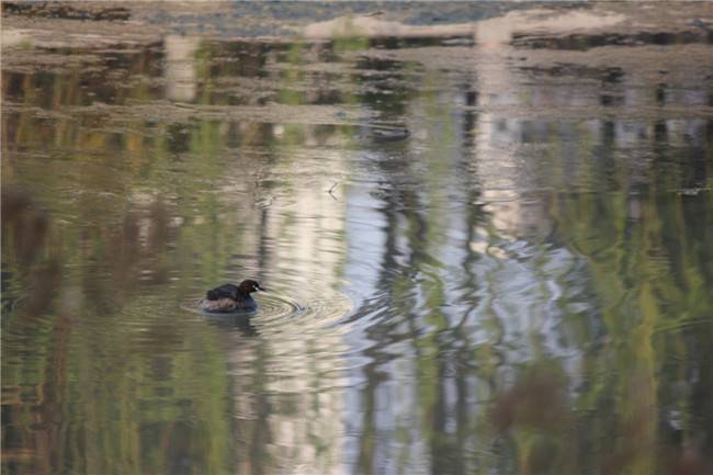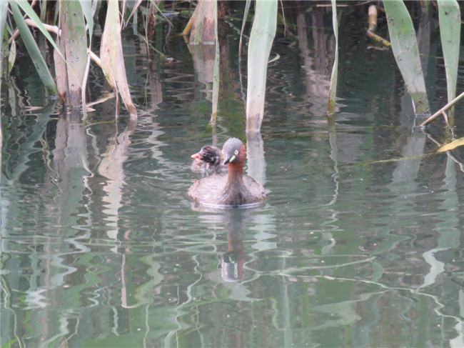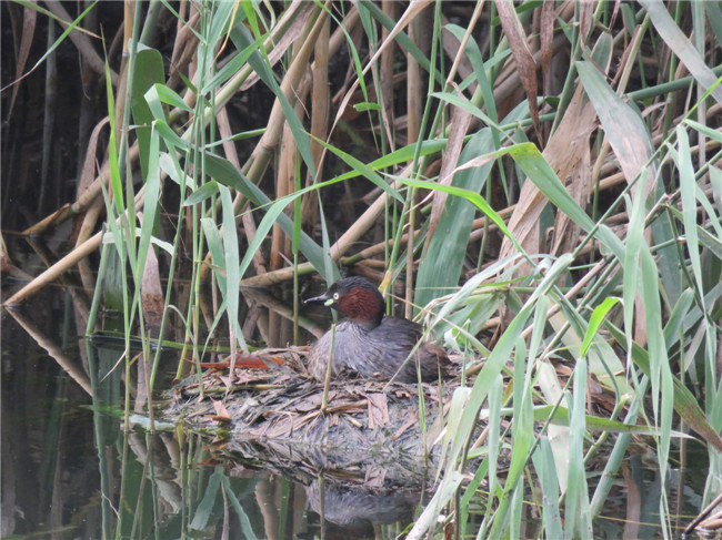 在梳洗河芦苇丛里孵蛋的鸊鷉成鸟