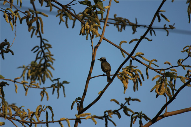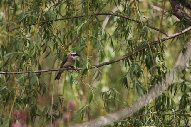 白头鹎在梳洗河畔的柳树与杨树上跃然枝头