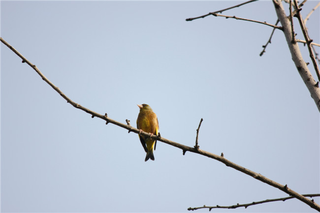 金翅雀是在校区内常见的繁殖鸟之一。黄色的身体十分漂亮显眼,不过更美的时候是它飞翔时,深色的飞羽中有一道鲜艳的金黄色斑纹,让人眼前一亮,“金翅”也因此得名。