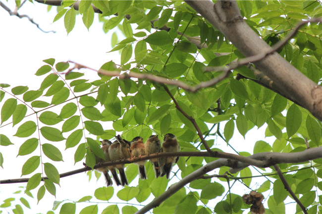 在教学楼前、宿舍楼旁等人类活动较多的地方,也能看到许多鸟儿,例如: