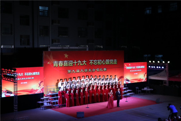 唯美农大桃李芬芳,江山如画祖国繁荣。在党的十九大即将胜利召开、学校111岁华诞到来之际,10月15日晚,学校“青春喜迎十九大 不忘初心跟党走”第九届大学生合唱比赛在东校区青年广场举行。