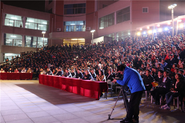 学校领导张宪省、杨天梅、嵇景涛、王振林、吴衍涛、张然、司金贵,学校各单位、各部门的负责同志,学院分管学生工作的党委副书记、全体辅导员,与2017级新生欢聚一堂,共同观看比赛。