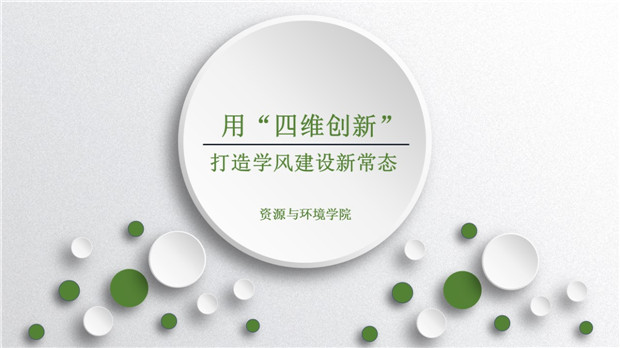 资环学院:用“四维创新”打造学风建设新常态。运用新媒体技术,依托“钉钉”APP等新手段严格日常考勤和管理,打牢学风之基;利用“弹幕时刻”“导师下午茶”等方式破解学风之惑;通过抓好班主任工作,推进毕业生导师指导推荐学生就业制度,畅通学业之路;通过先优引领,为每一位学生搭建出彩平台,打造学风建设新常态,成效显著。