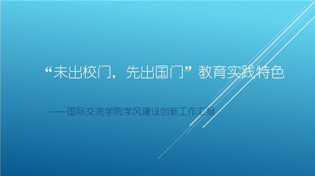 国交学院:围绕国际化人才培养目标,坚持“以生为本,立德树人”的育人理念,以学生为主角,彰显国际化办学特色。面对西方教育的全球化冲击和教育国际化趋势,形成以“未出校门,先出国门”的开放式育人理念指导下的立德树人格局。