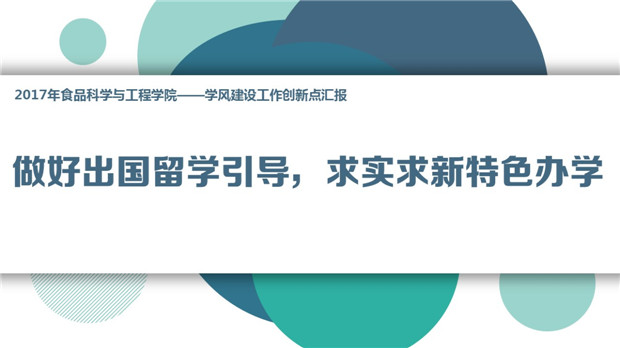 食科学院:做好出国留学引导,求实求新特色办学,以中外合作办学为基础,开展针对性就业指导服务工作中,探索形成“1341”国际化人才培养模式,多方面强化自身办学质量,培养国际化学生。