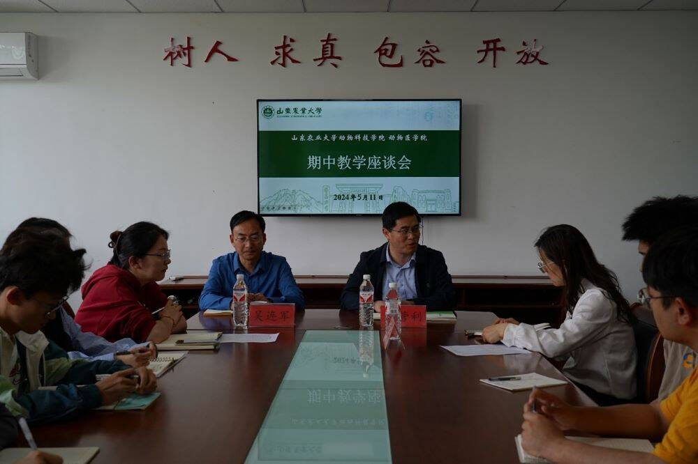 5月11日,动物科技学院、动物医学院在泮河校区考研楼召开期中教学检查学生座谈会,学院党委副书记吴连军、副院长商营利、教学秘书孙玲玉、团委辅导员张璇及各年级学生代表参加会议。