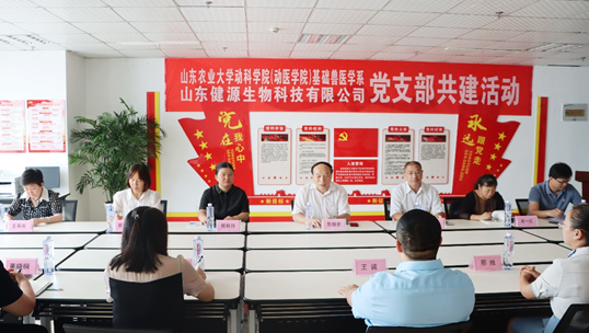 为推进学习贯彻习近平新时代中国特色社会主义思想主题教育走深走实,强化党建在业务中的引领作用,促进与企业之间的科技交流合作,8月26日,基础兽医学系党支部与山东健源生物科技有限公司党支部开展“支部共建”主题党日活动。