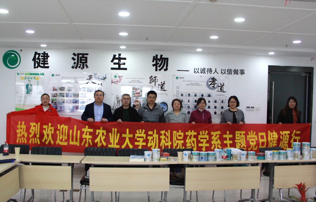 为进一步加强新形势下基层党组织建设,推进党史教育学习活动走深走实,强化药学系与企业之间的科技交流合作,4月22日上午,动物药学系党支部在动物科技学院党委委员刘建柱教授的带领下来到山东健源生物科技有限公司开展学党史办实事、科技服务主题党日活动,山东健源公司董事长王诚先生(动物科技学院2010届本科毕业生)热情接待。