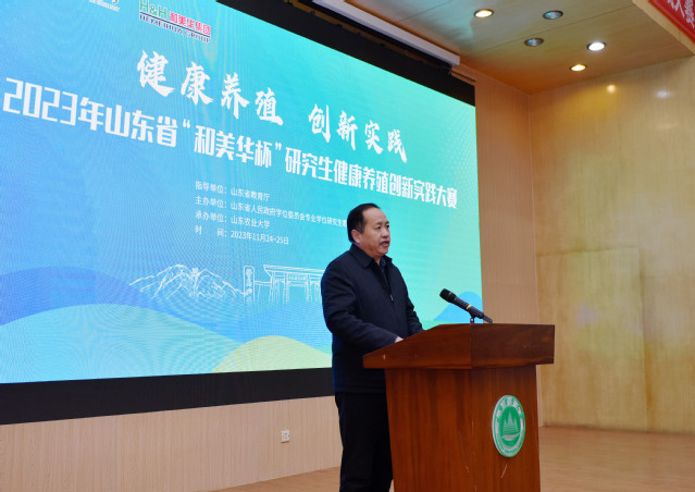 初冬乍寒,冬阳送暖。在全国上下深入学习贯彻习近平新时代中国特色社会主义思想和党的二十大精神,全国高校深入贯彻落实习近平总书记给中国农业大学科技小院同学们的重要回信之际,2023年11月25日,2023年山东省“和美华杯”研究生健康养殖创新实践大赛在山东农业大学岱宗校区拉开帷幕。山东农业大学党委副书记嵇景涛出席开幕式并致辞,山东农业大学副校长林海出席闭幕式并为获奖选手颁奖。