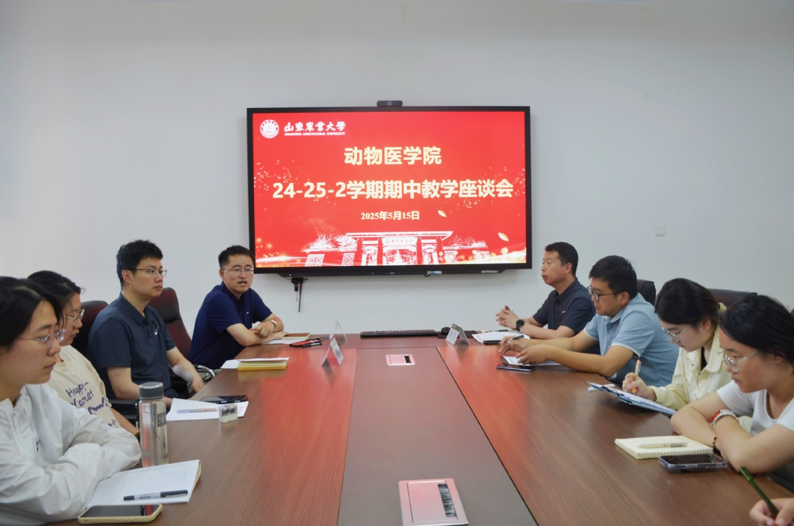 5月15日,动物医学院在泮河校区动物科技楼(人兽共患病平台)N209会议室举办动物医学院24-25-2学期期中座谈会,学院党委副书记邹磊、副院长张晓、团委书记潘广臣、教学秘书老师李超以及各级学生代表到场参加。
