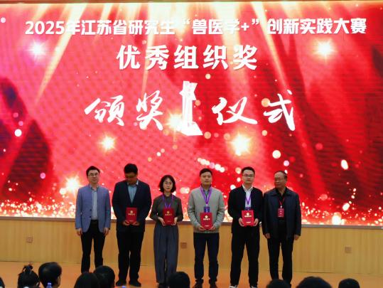 10312025江苏省研究生“兽医学+”创新实践大赛与江苏省研究生“兽医学”学术创新论坛在扬州大学拉开序幕赛事吸引了南京农业大学、海南大学等全国共14所高校的24支队伍参赛。在经过激烈角逐后,动物医学院研究生团队斩获特等奖1《一种鸡免疫抑制药物创制》、二等奖1《家禽支原体诊断技术》和三等奖1《网状内皮组织增殖病病毒与宿主Viperin蛋白相互作用的研究》),山东农业大学动物医学院获优秀组织奖