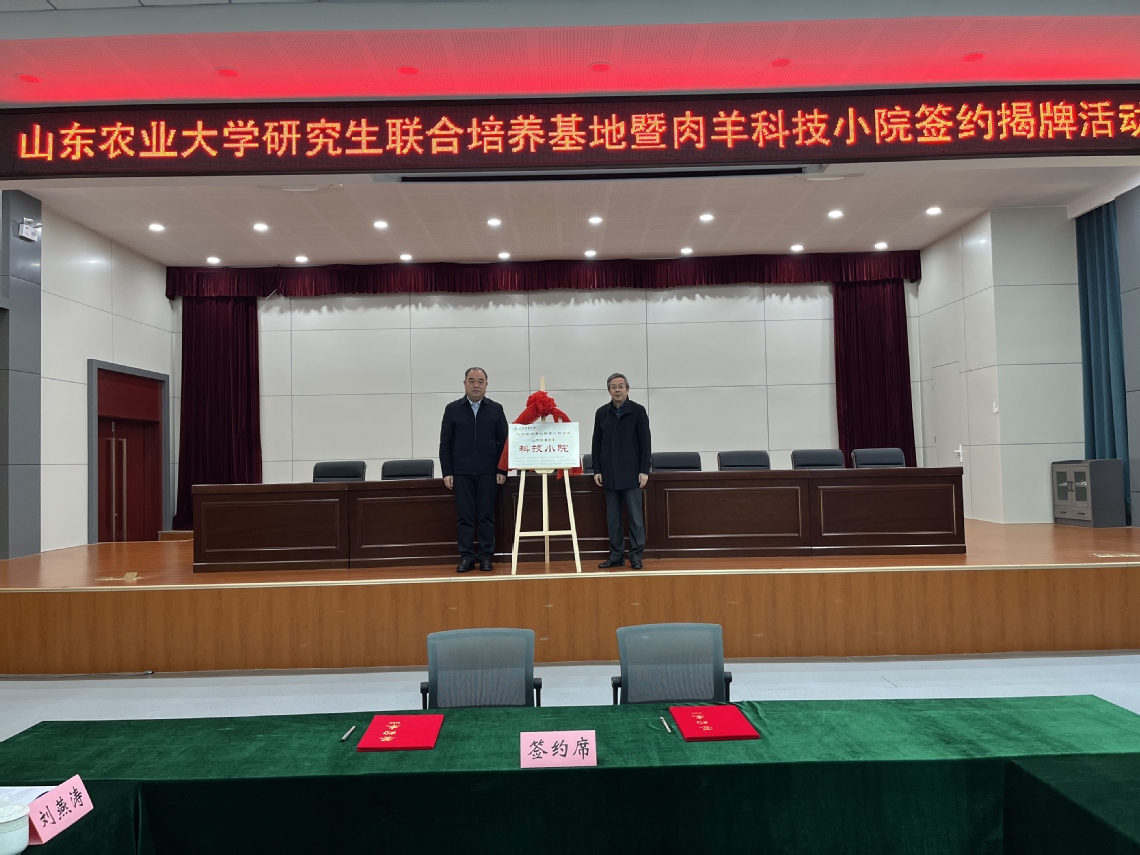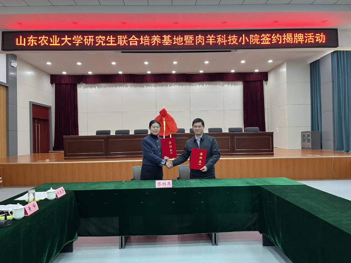 1218日,山东农业大学研究生联合培养基地暨肉羊科技小院签约揭牌活动在利津县举行。研究生处处长许永玉动物医学院党委书记朱宝库副院长商营利,肉羊科技小院团队成员王方昆、郝桂娟参加相关活动。东营市现代畜牧业发展服务中心党总支书记、主任刘志强,利津县委常委、组织部部长岳建伟等陪同参加