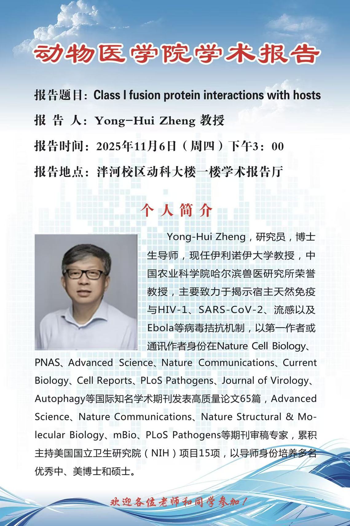 2025年10月22日(周三)下午3:00 泮河校区动科大楼一楼学术报告厅