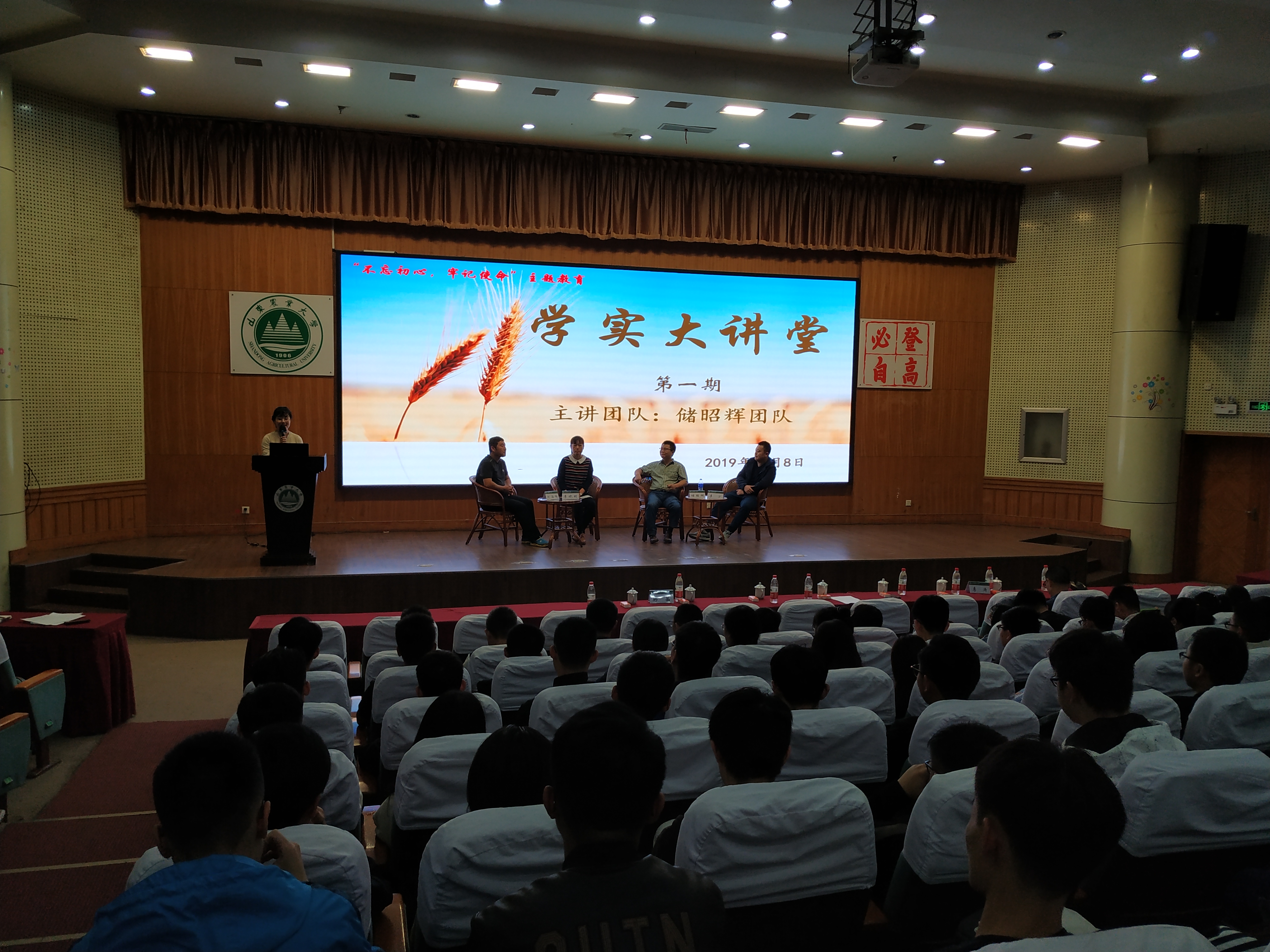 10月8日下午,农学院学术品牌特色活动“学实大讲堂”在南校区第一学术报告厅开讲,首期嘉宾邀请储昭辉教授及其团队,学院党委副书记李涛、团委辅导员及在校生代表四百余人参加,活动由学院团委书记尹昌美主持。 首期大讲堂以“不忘初心,牢记使命”为主题,分为团队宣传展示和科研进展报告两个环节。在第一环节,储老师向同学们展示了课题组成员的主要研究方向及科研成果,分享了“情怀、创新和坚持”在农业科研工作中的重要性,教育同学们要学会联想,更要有锲而不舍的精神,“坚持”比与生俱来的天赋更重要。在第二环节,储老师以最新发表在《自然-遗传学》杂志上的科研成果为主题,为同学们讲述了克隆抗纹枯病基因背后的科研故事。他指出,做科研创新,要守住寂寞孤独,也要学会拥抱情怀,这正是他一路走来,坚持科研的初心。储老师通俗易懂的分享让同学们受益匪浅,来自18级农学三班的田晨同学感叹道:“这次大讲堂让我感受到了科研的魅力,惊叹于储老师十年磨一剑的科研精神,我一定会好好学习,培养自己的创新意识,希望将来也有机会为农业科研事业做贡献。” 据悉,“学实大讲堂”是农学院推出的学术特色活动之一,旨在促进优良学风建设,落实“全员、全过程、全方位”育人工作要求,帮助本科生拓宽知识面、了解科技前沿、激发专业学习兴趣,后续还将邀请更多科研团队做客大讲堂。