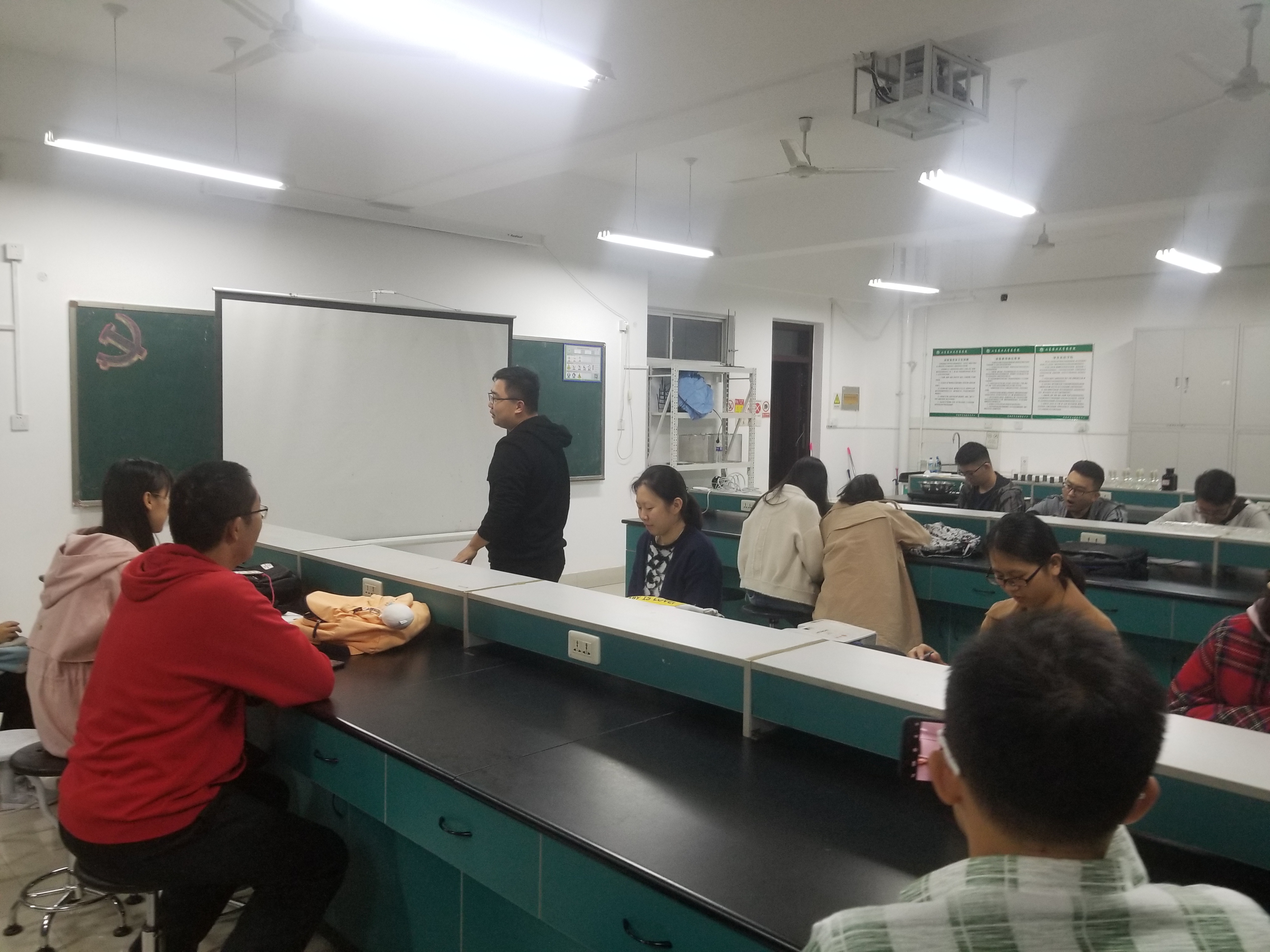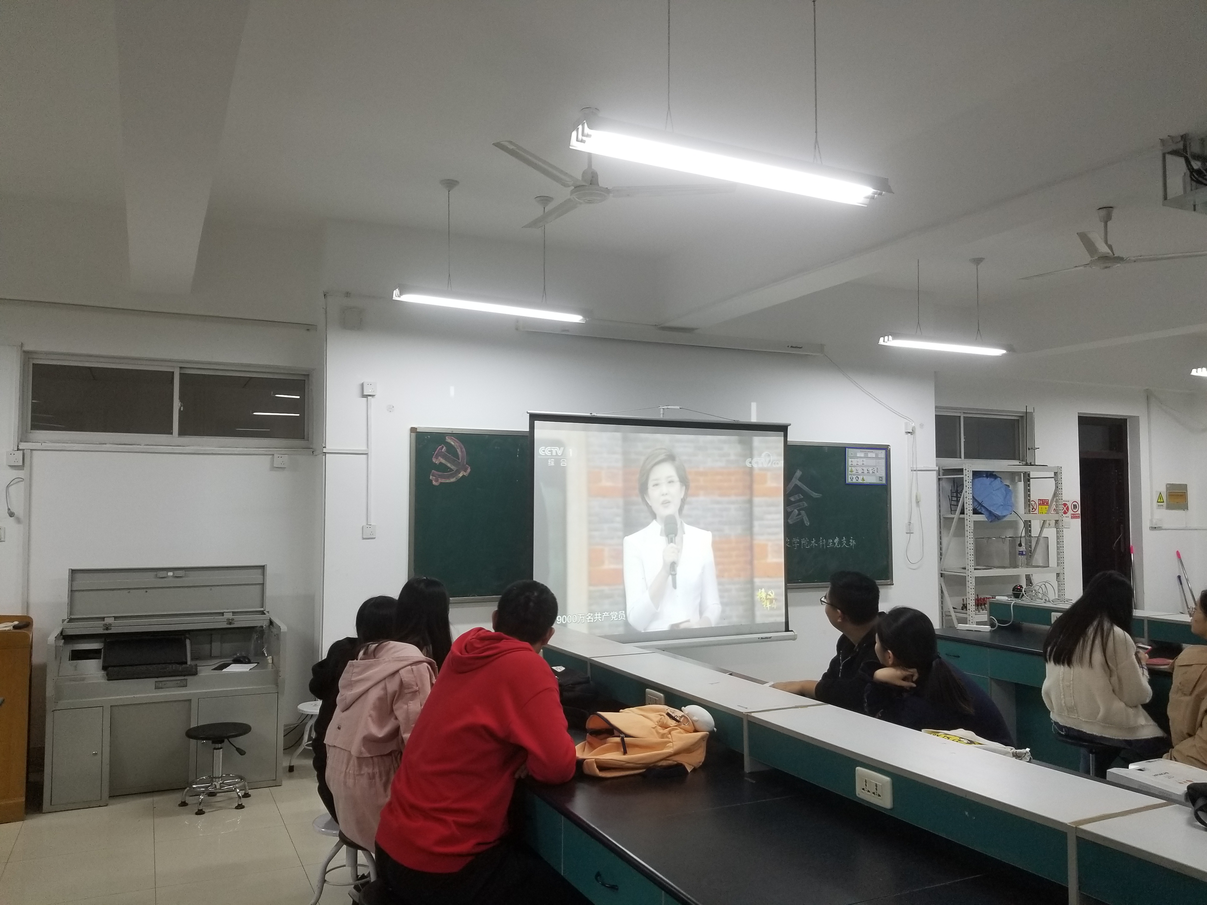 10月21日晚,农学院本科生党支部组织全体学生党员在南校区实验楼A418集中观看中央电视台一套《榜样4》直播节目,聆听全国优秀共产党员的榜样故事,感受榜样的力量。 视频再现了一位位共产党员榜样同志在各自领域的光荣事迹,其中既有战争年代,冲锋在前,不怕牺牲的革命老英雄张富清,也有践行“当干部就应该能吃亏”带领全村致富的西辛庄村党支部书记李连成;既有把青春和热血都献给了脱贫攻坚事业的黄文秀,也有风雨无阻,划船进湖区投递邮件的邮递员唐真亚;既有“宁愿一人脏,换来万家净”的80后环卫工人李萌,也有扎根农村、甘于奉献,带病主动报名下乡扶贫的隋耀达,还有实现人类航天器首次在月球背面巡视探测,率先在月背刻上中国足迹的嫦娥四号航天人员。视频中,他们一个个被请上主席台阅读了多年前自己写下的入党志愿书,并在初心台上跟大家分享了自己的初心,同时虔诚地宣誓:我志愿加入中国共产党。