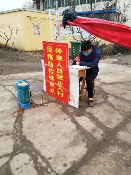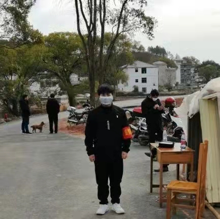 志愿服务工作: 现工作于村口防疫关卡,给进出人员做登记,量体温,并劝返部分外来人员。 地点:江西省赣州市于都县罗江乡下坝村村口 姓名: 孙瑞琪 班级:作物学七班