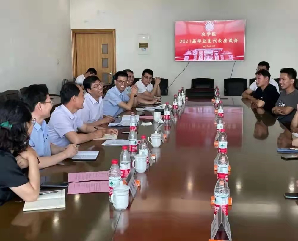 6月21日下午,农学院于综合楼N403成功举办2021届毕业生座谈会。农学院党委书记崔志峰、党委副书记李涛、学院副院长鲍印广、专业主任、本科生教学秘书、团委老师及22位毕业生代表参加座谈会。