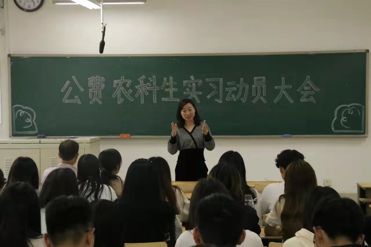5月12日下午,农学院于综合楼S112举办公费农科生实习动员大会。农学院副院长鲍印广、18级公费农科班班主任韩菡、教务秘书仵允峰、团委老师及18级公费农科生参加本次会议。