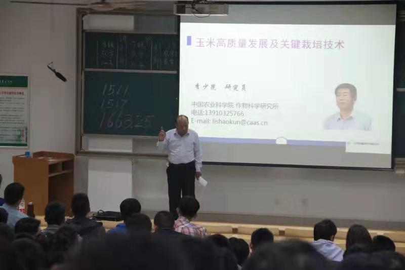 10月10日下午,农学院于综合楼N301举行“启益人生,名师讲坛”报告会。农学院植物科学与信息系教授刘鹏主持会议,特邀中国农业科学院作物科学研究所李少昆研究员担任主讲。
