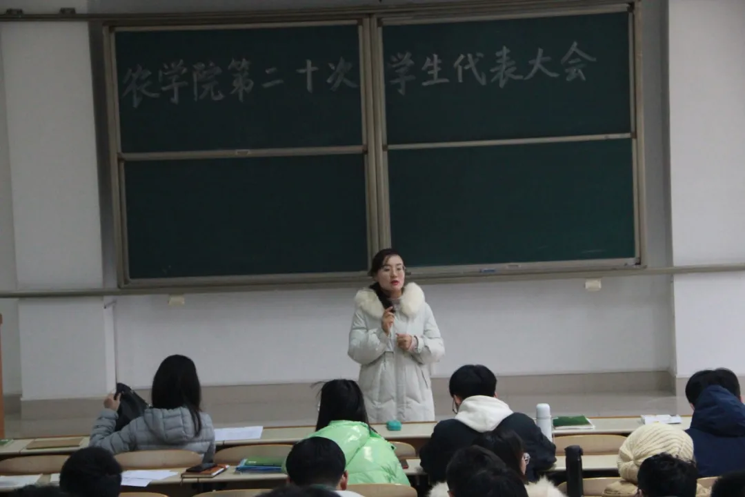 12月2日中午,农学院第二十次学生代表大会于综合楼N103举行。学院团委书记尹昌美、辅导员程璐、李建出席,各年级各专业学生代表参加。