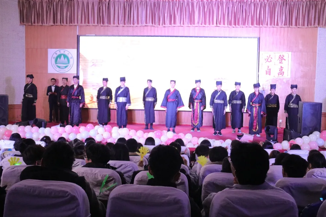 农学院副院长蓝孝新老师、新生班主任刘海峰老师、王维老师、团委辅导员及2020级全体新生参加。晚会以热情似火的开场舞拉开帷幕。在绚烂纷呈的灯光和欢声雷动的掌声下,“念•故乡旧梦、迎•拂晓岁华、梦•星河徜徉”三个篇章层层深入。 念.故乡旧梦 同学们徜徉在洋洋盈耳、娓娓动听的歌声、翩若惊鸿、宛若游龙的舞蹈、玄妙入神、变幻莫测的魔术以及令人捧腹大笑又温情动人的小品中,博得观众们的连连惊叹和阵阵喝彩。 迎.拂晓岁华 蕴含悠久历史的加冠礼,在庄严的氛围中凸现了从古到今亘古不变的弱冠之年、成年之意,其乐融融之际引发了同学们的思考。 最后,晚会在校歌《携手登攀,共创辉煌》的全体大合唱中落下帷幕,愿同学们在往后的日子中,坚持登高必自的理念,牢记使命,不负韶华,争做优秀农学人。