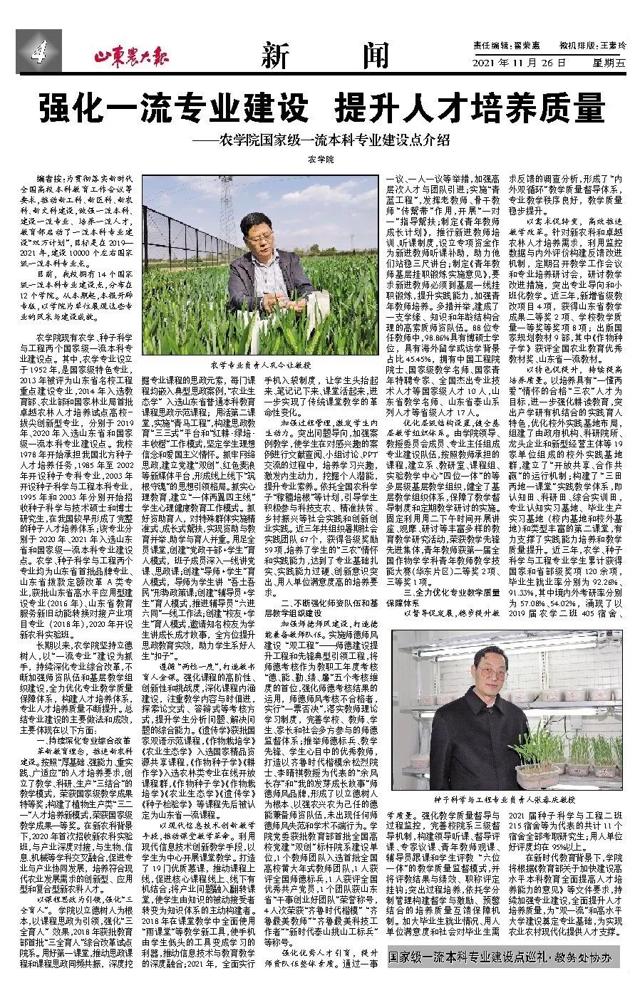 校报专版报道我院一流专业建设点情况