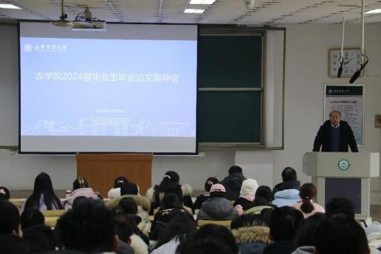 农学专业主任刘鹏为大家做毕业论文写作指导,建议同学们在思想上重视,尽早行动;注意论文写作的规范性,做好实验数据的统计整理;提高内容质量,严谨学术不端。学院教务秘书仵允锋围绕毕业论文和毕业实习具体安排为毕业生做介绍,提醒大家随时关注毕业论文提交等关键时间点,保质保量完成毕业论文和实习等相关工作。毕业生辅导员李建就学院近期招聘会安排、假期离校请假流程、假期安全、学分互认工作等做说明。