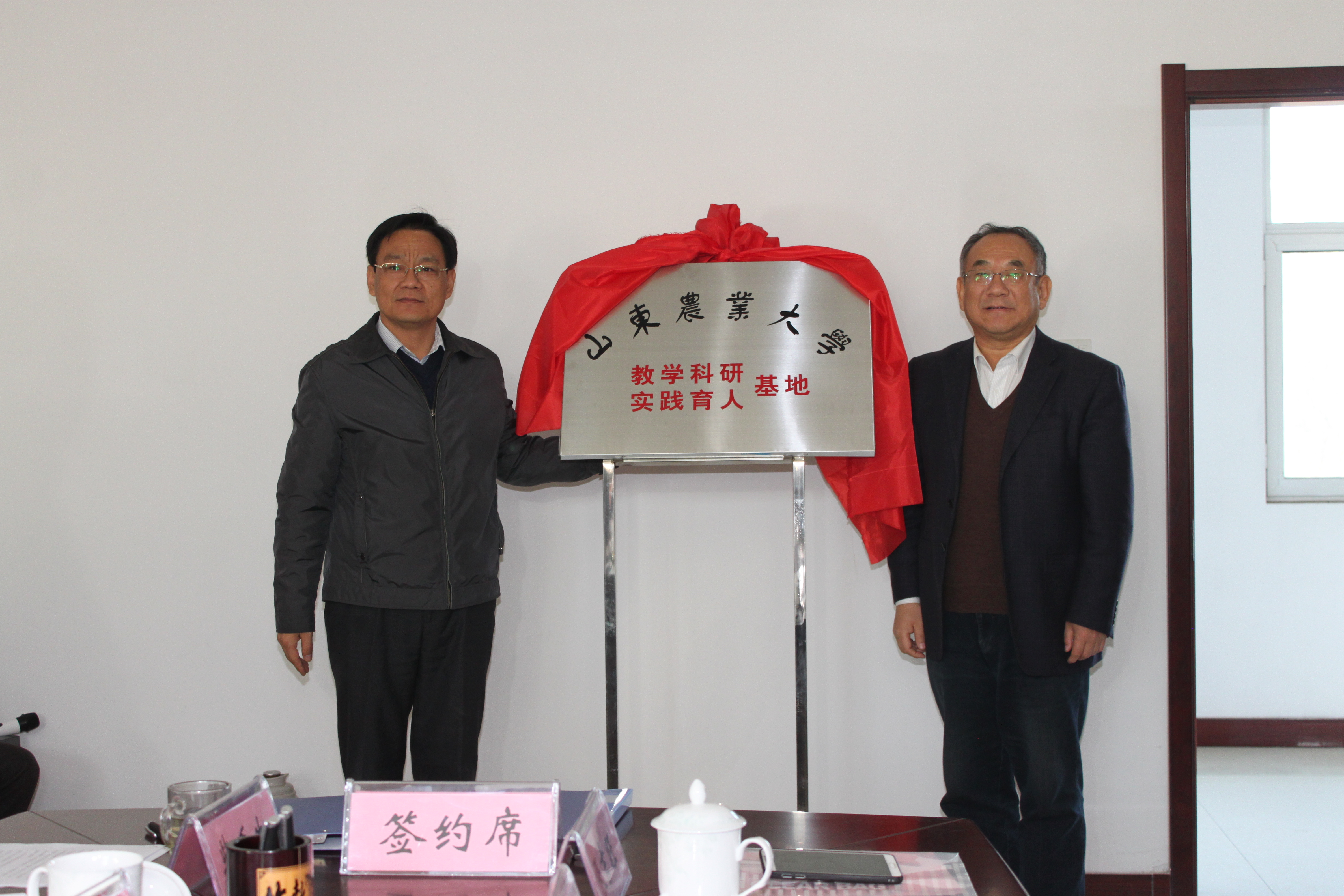 11月15日,山东农业大学齐河县农业局教学科研基地挂牌仪式在齐河绿丰种业公司举行。副校长王振林、齐河县副县长丁家勇以及校地相关部门领导出席活动。