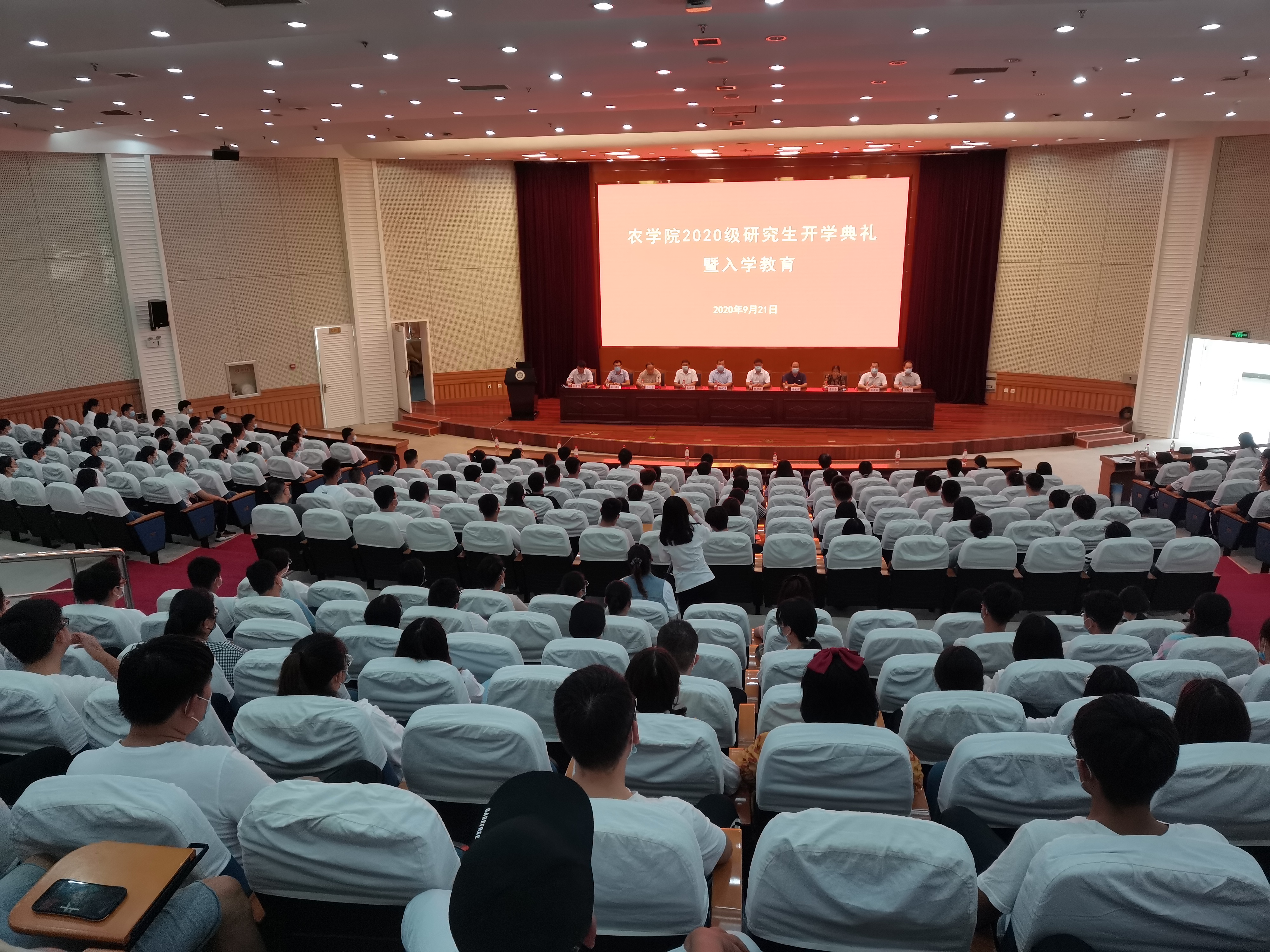 9月21日下午,农学院2020级新生开学典礼在山东农业大学文理大楼一楼报告厅隆重举行。参加会议的有山东农业大学研工委书记赵明月、山东鲁研农业良种有限公司副总经理解树斌、学院全体领导、学院研究生导师代表、学院研究生会成员和2020级全体研究生同学。