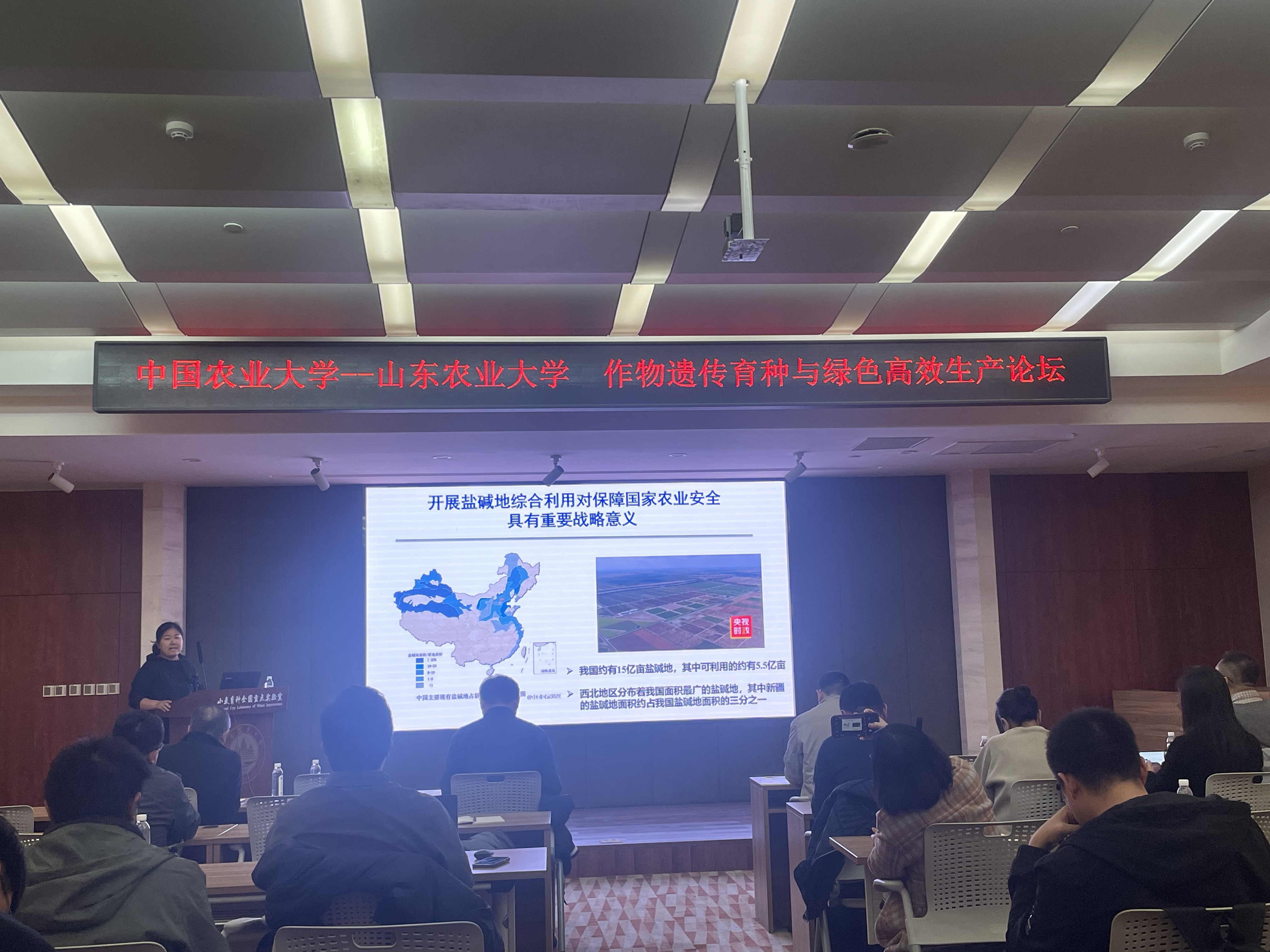 11月20日,中国农业大学与山东农业大学-作物遗传育种与绿色高效生产论坛在登高楼一楼报告厅举行。上午,学校党委常委、副校长王勇,“齐鲁粮仓”发展战略研究中心主任、中国农业大学国家农业科技战略研究院院长高旺盛教授,中国农业大学农学院倪中福院长,及学校科技处、发规处、人事处和站园中心等相关人员出席会议,围绕更高水平齐鲁粮仓建设、学科建设和人才培养进行研讨交流。