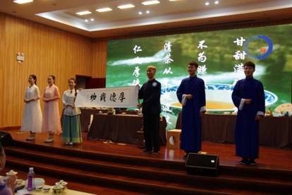 我校的团体赛作品《大碗茶情》以“大碗茶”为主题,以爷孙俩的饮茶对话引出大碗茶的故事,将明清时期泰山善士路边施茶,缓解登山祈福者饥渴之苦;民国时期冯玉祥将军作诗《卖大碗茶者》,介绍普通百姓卖大碗茶为生;北京老舍茶馆以卖大碗茶为基础成立大碗茶集团,并一直坚持在茶馆门口卖“老二分”的大碗茶等故事结合茶艺进行表演,反映了大碗茶中包含的仁义厚德、廉美和敬之精神,获得在场师生的高度好评,最终在激烈的竞争中获得团体赛二等奖第一名。