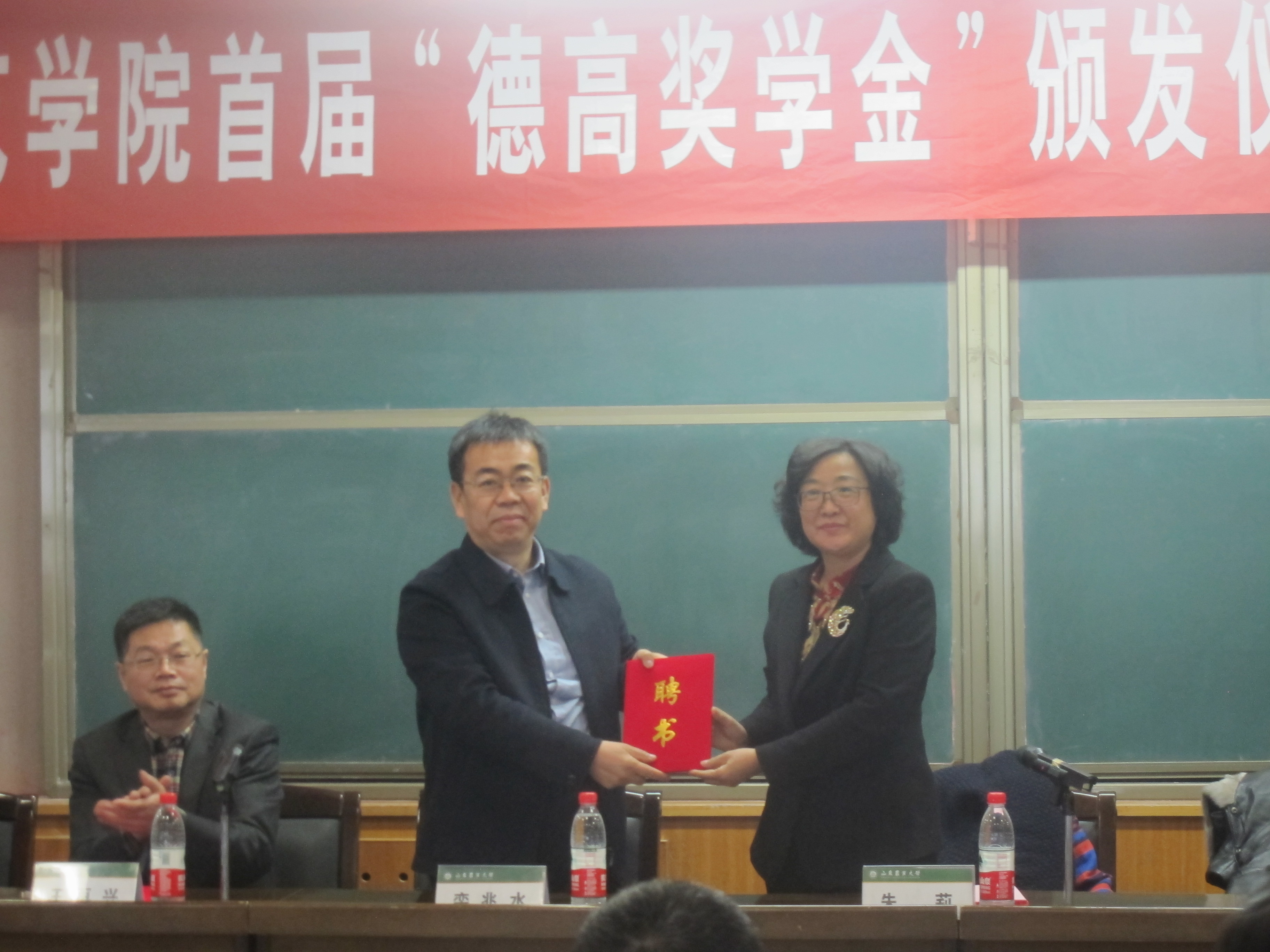 12月28日,园艺学院于南校区第四学术报告厅举办首届“德高奖学金”颁发仪式暨校友创业报告会,学校党委常委、副校长朱莉,德高蔬菜种苗研究所总经理栾兆水、董事长张东芹,南校区、园艺学院主要负责人及部分老师、学生代表共同参加活动。