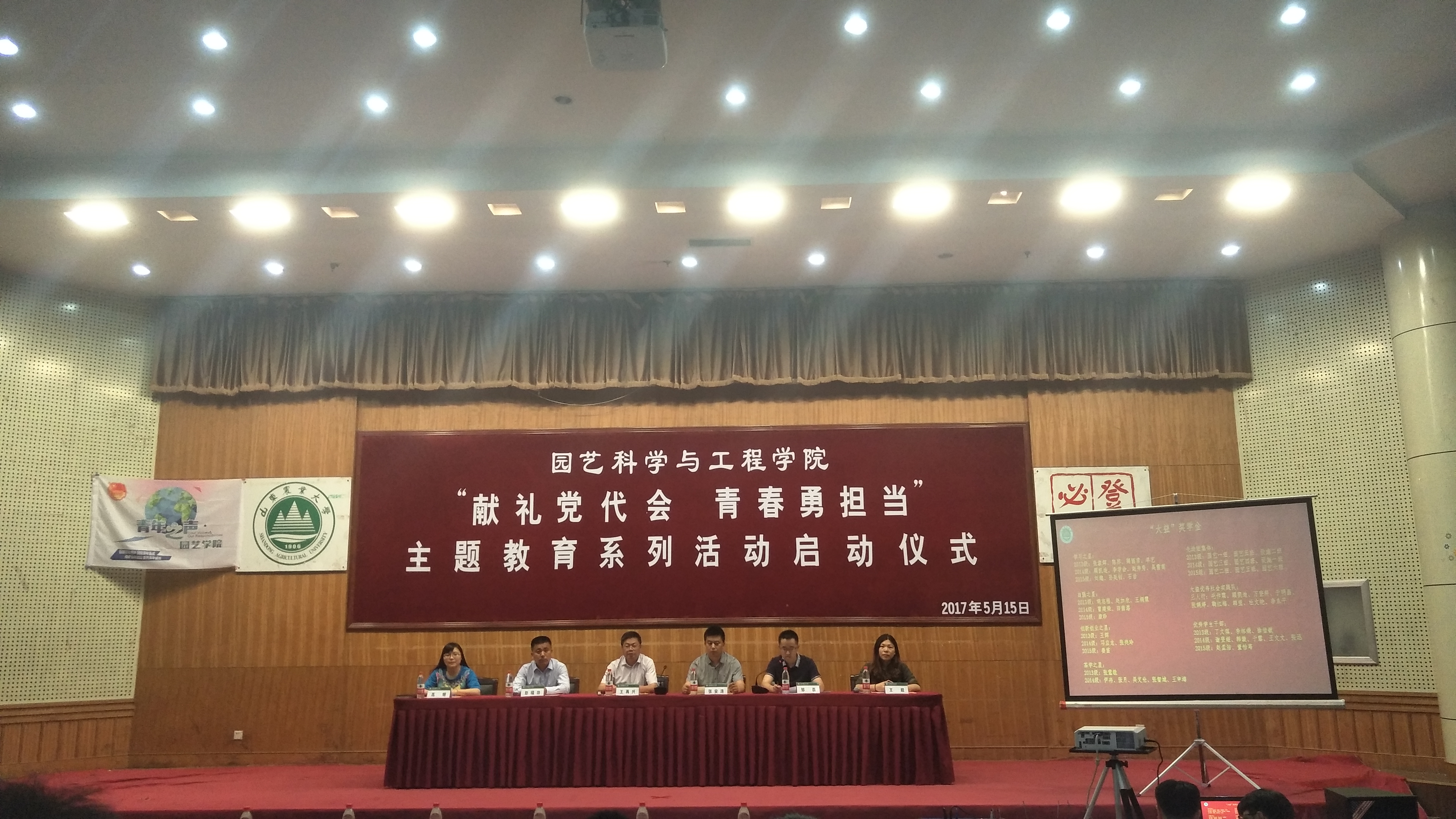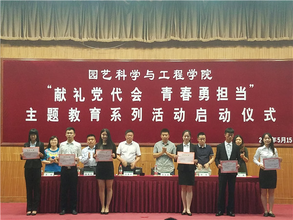 5月15日,为迎接学校第七次党代会的胜利召开,营造浓厚的思想舆论和校园文化氛围,园艺学院在南校区第一学术报告厅举行了“献礼党代会,青春勇担当”系列教育活动启动仪式。园艺学院党委书记王再兴、副院长彭福田、党委副书记张安涛、团委老师及学生党员、骨干代表参加此次活动。此次启动仪式的举行,既是“献礼党代会,青春勇担当”系列教育活动的总动员,又是对一年来学院涌现出的先优群体和个人的奖励表彰,更是一次面向广大青年学生的思想教育党课。