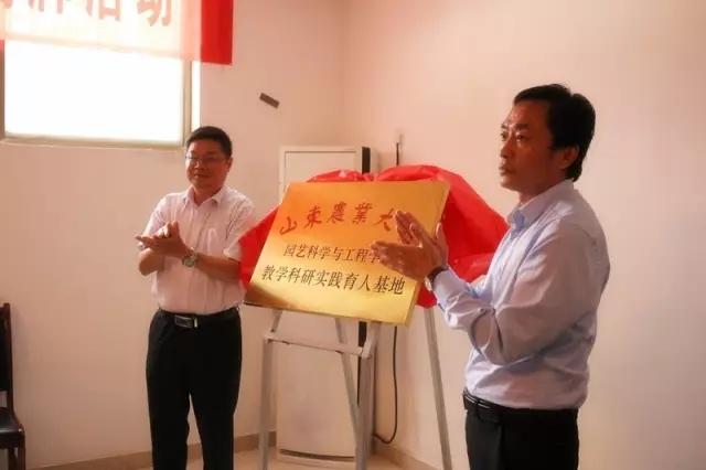 5月11日,我校园艺科学与工程学院教学科研实践育人基地在泰山天颐湖旅游开发有限公司挂牌。园艺学院党委书记王再兴、副院长彭福田、观赏园艺系教授郑成淑、设施园艺系副教授张运吉、院团委高姗老师、泰安市岱岳区副区长张建峰、岱岳区旅游局局长于在武、满庄镇镇长杜传军以及泰山天颐湖旅游开发有限公司副总经理程送海共同参加了揭牌仪式。