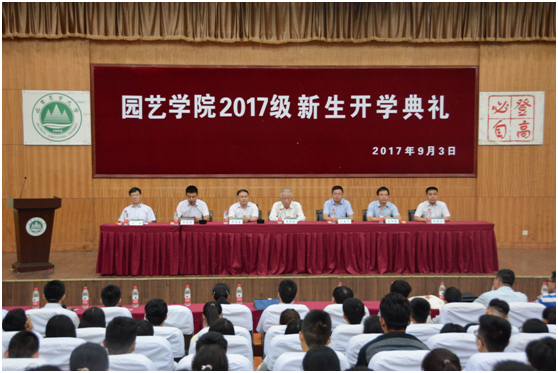 典礼由党委副书记张安涛主持。在举行了热情洋溢的奏唱国歌仪式后,郝玉金院长致欢迎词。他详细介绍了园艺学院雄厚的学科实力、深厚的文化底蕴及丰硕的教学科研成果。他希望2017级新同学能够尽快适应新环境,在新的学习环境中探求新方法,珍惜大学生活,坚强面对挫折与挑战,践行自己的大学梦。随后,教师代表李清明就自己的感受与大家分享三点:一是诚信做人,踏实做事;二是热爱专业,志存高远;三是自我管理,自主学习。他希望学子树立起远大目标,制定可行的学习计划,踏实前进。接着,园艺学院学生会主席董怡苇和2017级新生代表徐同尧分别结合自己感受进行发言。最后,典礼在新生慷慨激昂的宣誓中落下帷幕。