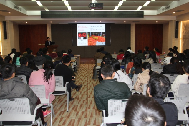 12月24-25日,中国园艺学会理事长、国家大宗蔬菜产业技术体系首席科学家、中国农科院蔬菜花卉研究所杜永臣研究员来我校访问并开展学术交流。25日下午,杜永臣研究员在国家重点实验室一楼学术报告厅作了“番茄基因组研究进展”的学术报告,报告会由园艺学院院长郝玉金教授主持,100余名教师和学生参加。