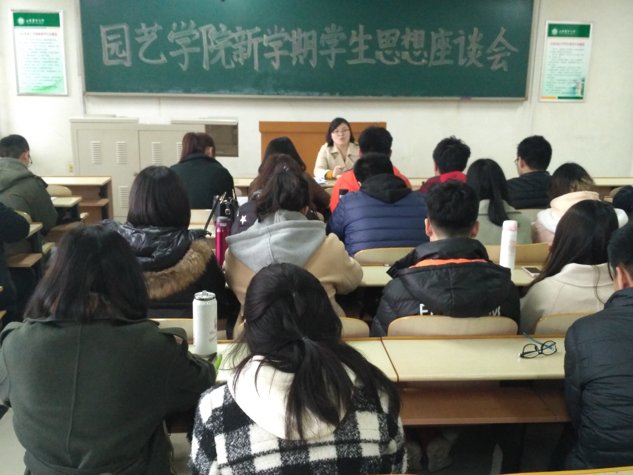 3月4日,园艺学院召开新学期学生思想座谈会,分别面向学院学生会成员代表、各年级学生代表召开三次座谈,学院团委书记邹磊、团委副书记高姗及学院2017级辅导员安莲参加并与座谈同学进行了交流。
